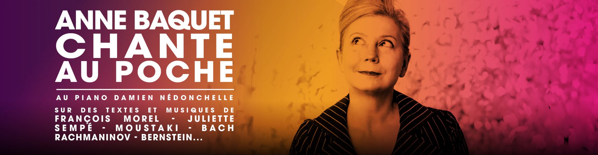 Anne Baquet c’est une chanson douce qui parfois se fait volcan. C’est la musique de la vie qui va et vient. C’est une voix qui dit beaucoup l’air de rien. C’est ce joli clown soprano qui chante Mozart debout sur un piano. La voici de retour avec son pianiste Damien Nédonchelle dans un tour de chant dont elle a le secret.