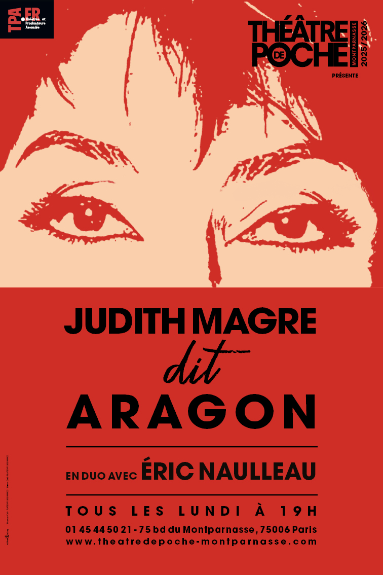 Poursuivant leur duo acclamé autour de la vie d’Apollinaire, Judith Magre et Eric Naulleau célèbrent Aragon. Poète à la vie ambigüe, romancier, journaliste, figure incontournable du communisme, du dadaïsme, du surréalisme, Louis Aragon est connu pour son engagement dans la Résistance et pour son attachement à sa Muse, rencontrée à Montparnasse, Elsa Triolet. C’est à une traversée de sa vie d’amours, des êtres comme des idées, du roman comme de la poésie, de la vie comme de sa réinvention, que vous invitent en récit et en poèmes nos deux artistes fidèles du Poche. Sous le regard d’Aragon, grâce au bagou de Naulleau, deux immortalités se croisent : les yeux d’Elsa et le sourire de Judith.