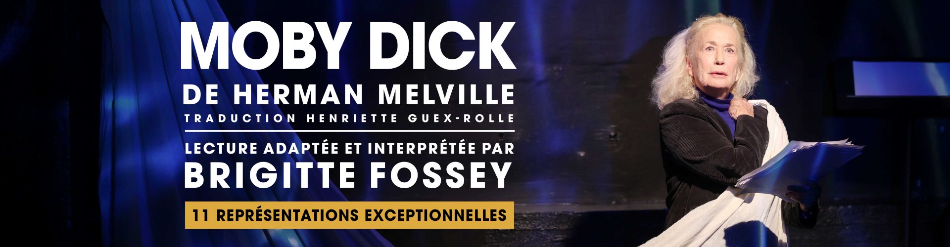 Moby Dick c’est la quête acharnée d’une baleine blanche par un marin à qui elle a arraché la jambe. C’est le destin d’un homme mû par un fol instinct de revanche, qui entraîne dans son sillage tout un équipage. C’est le récit d’un écrivain qui relève un défi colossal : opposer l’Homme à la Nature en un duel arbitré par l’Océan. C’est une œuvre organique dans laquelle Brigitte Fossey nous plonge avec passion pour en sonder la terrible profondeur. Embarquement immédiat !